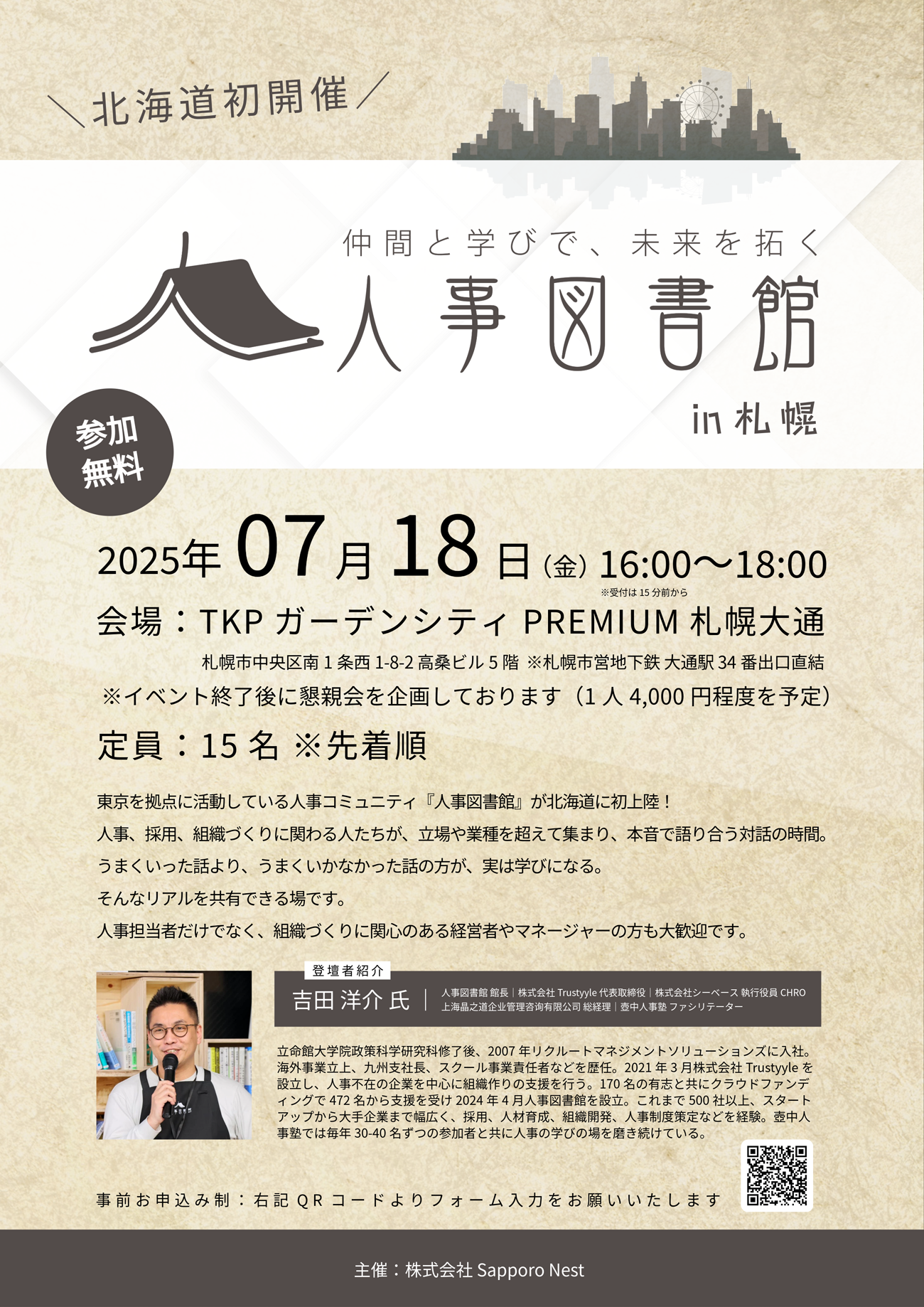 2025年7月18日(金)に開催された「出張 人事図書館 in 札幌」は、おかげさまで無事に終了いたしました。
